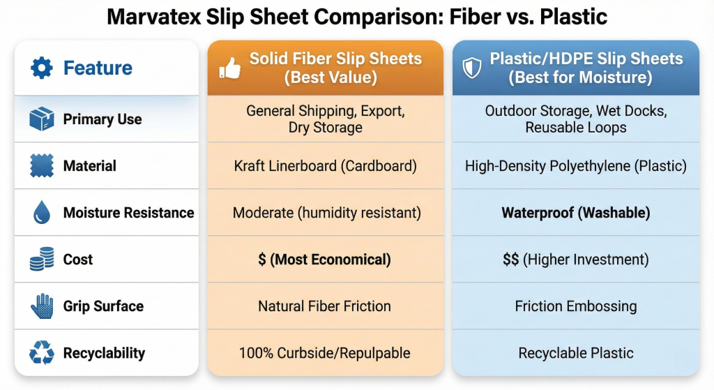 Cost Consideration: While HDPE slip sheets offer superior longevity and water resistance, they are more expensive than solid fiber. If your application does not involve high moisture, we recommend our Solid Fiber Slip Sheets for the most cost-effective solution.